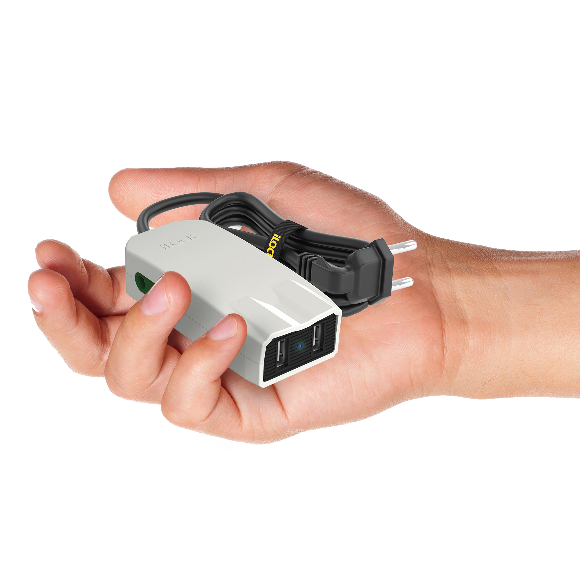 Features an angled plug for easier access in tight spaces and a sleek, space-saving design.